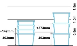 This container has a wide range of applications in transport and distribution. Thanks to its design, each container is nestable, which allows you to save storage space by approximately 60% – when stacking, just turn the box by 180°