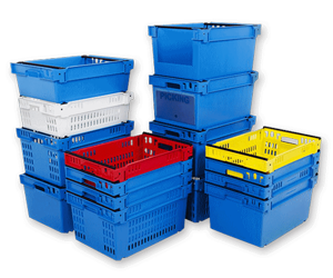 These transport and storage crates have a certificate allowing them to come in contact with food. Due to their construction, they are suitable for stacking during transportation.
