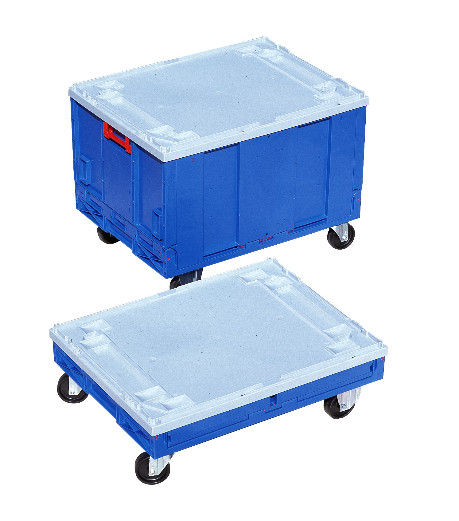 Foldable plastic container with a window on rollers 800x600x585 mm