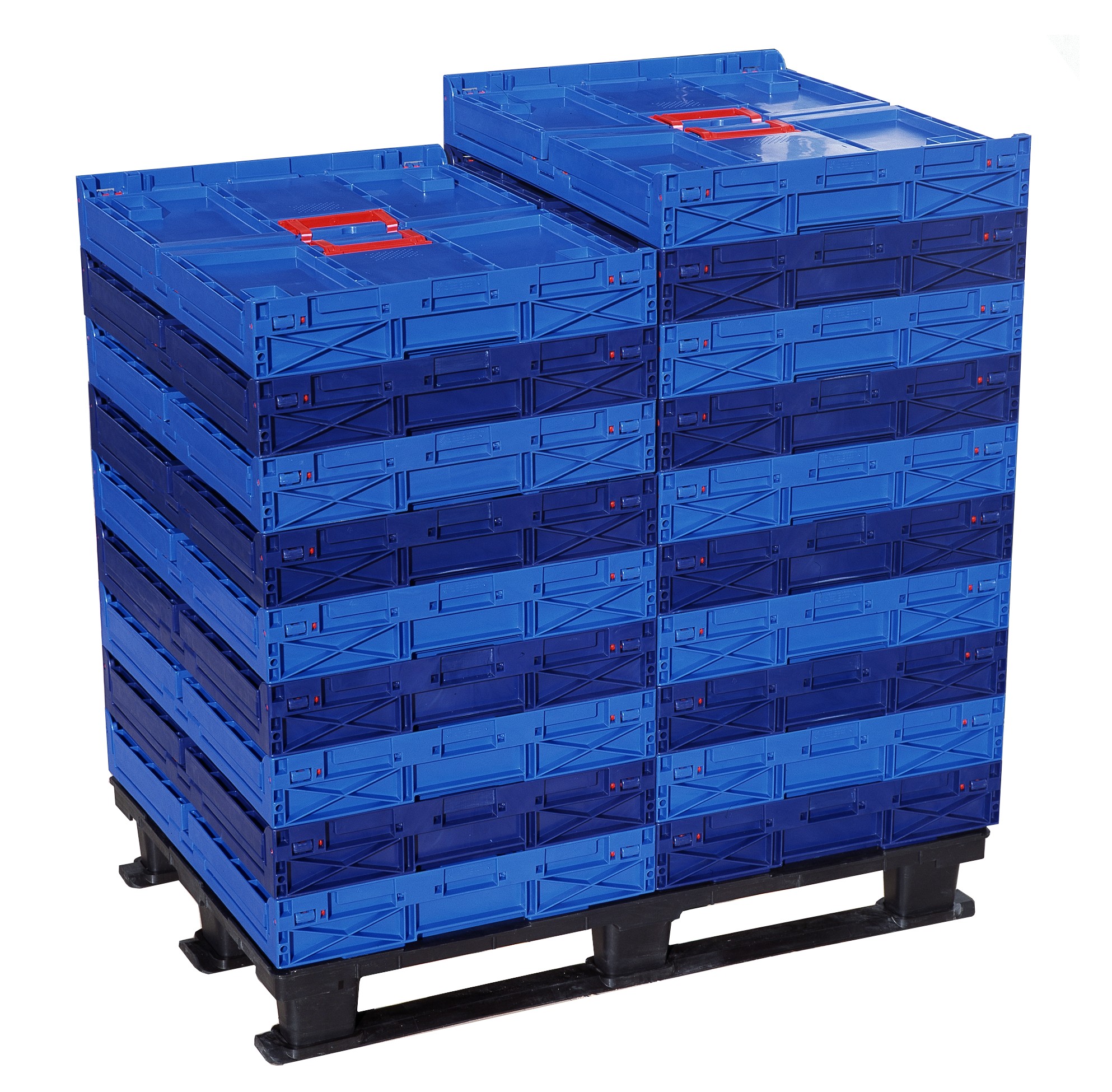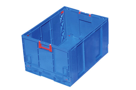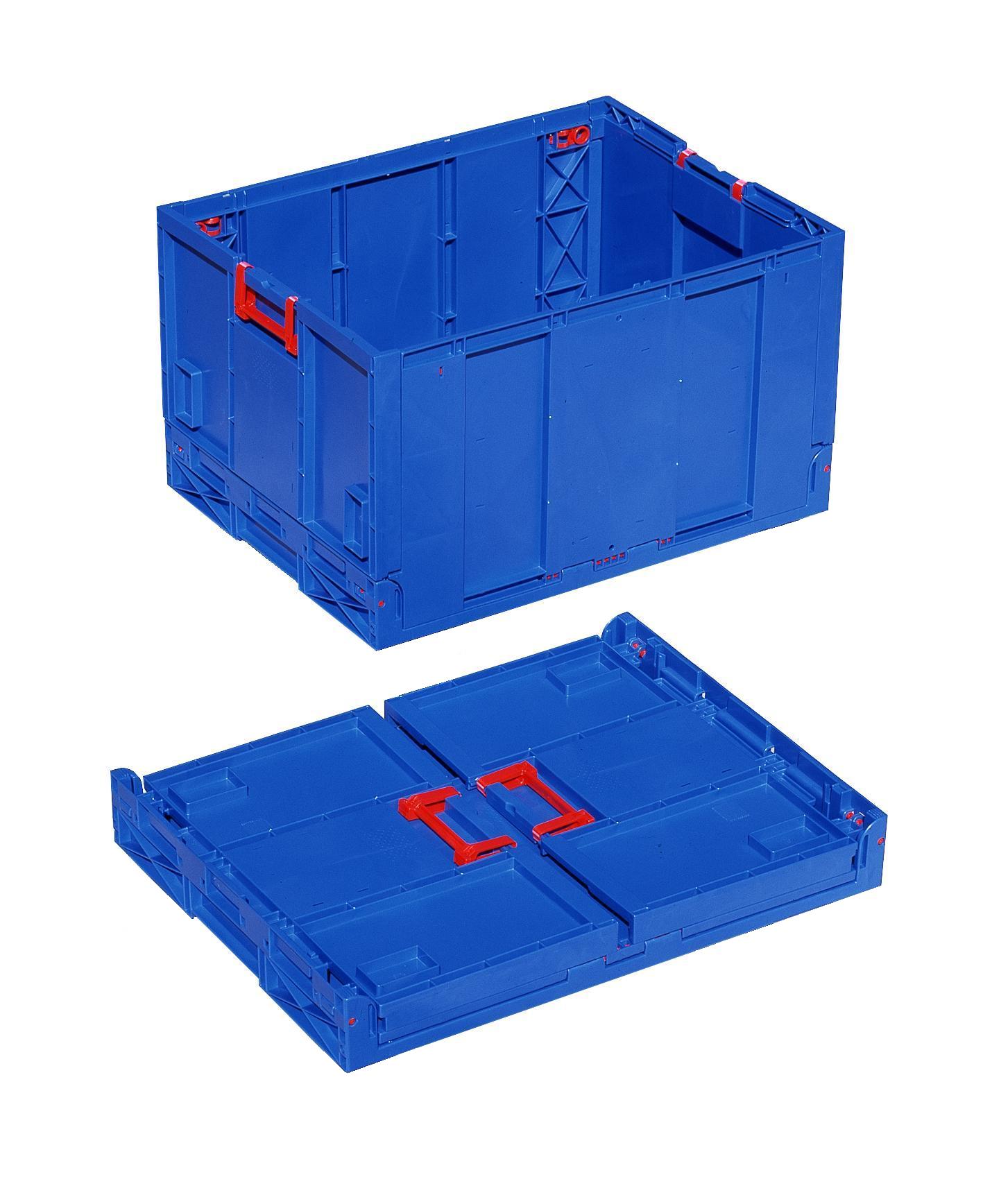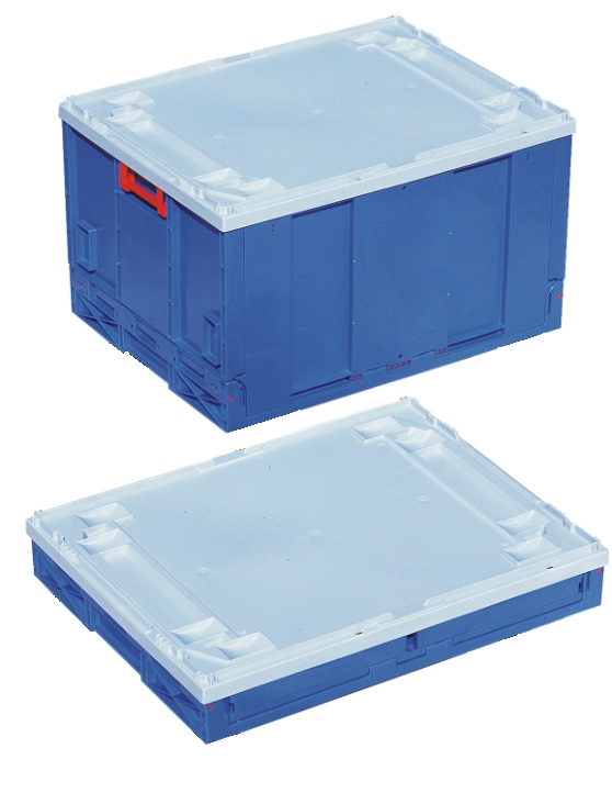 Folding container used mainly in the clothing and automotive industries. Due to its size, it can be used for many applications. When folded, it takes up very little storage space. Thanks to its design, the assembly and disassembly process is simple, very quick and does not require any additional tools. The container does not contain separate elements.