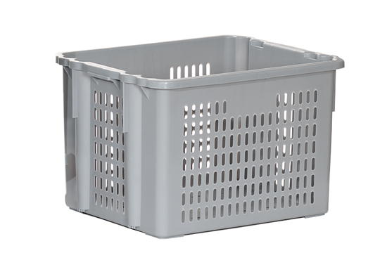This container has a wide range of applications in transport and distribution. Thanks to its design, each container is nestable, which allows you to save storage space by 60% – when stacking, just turn the box 180°